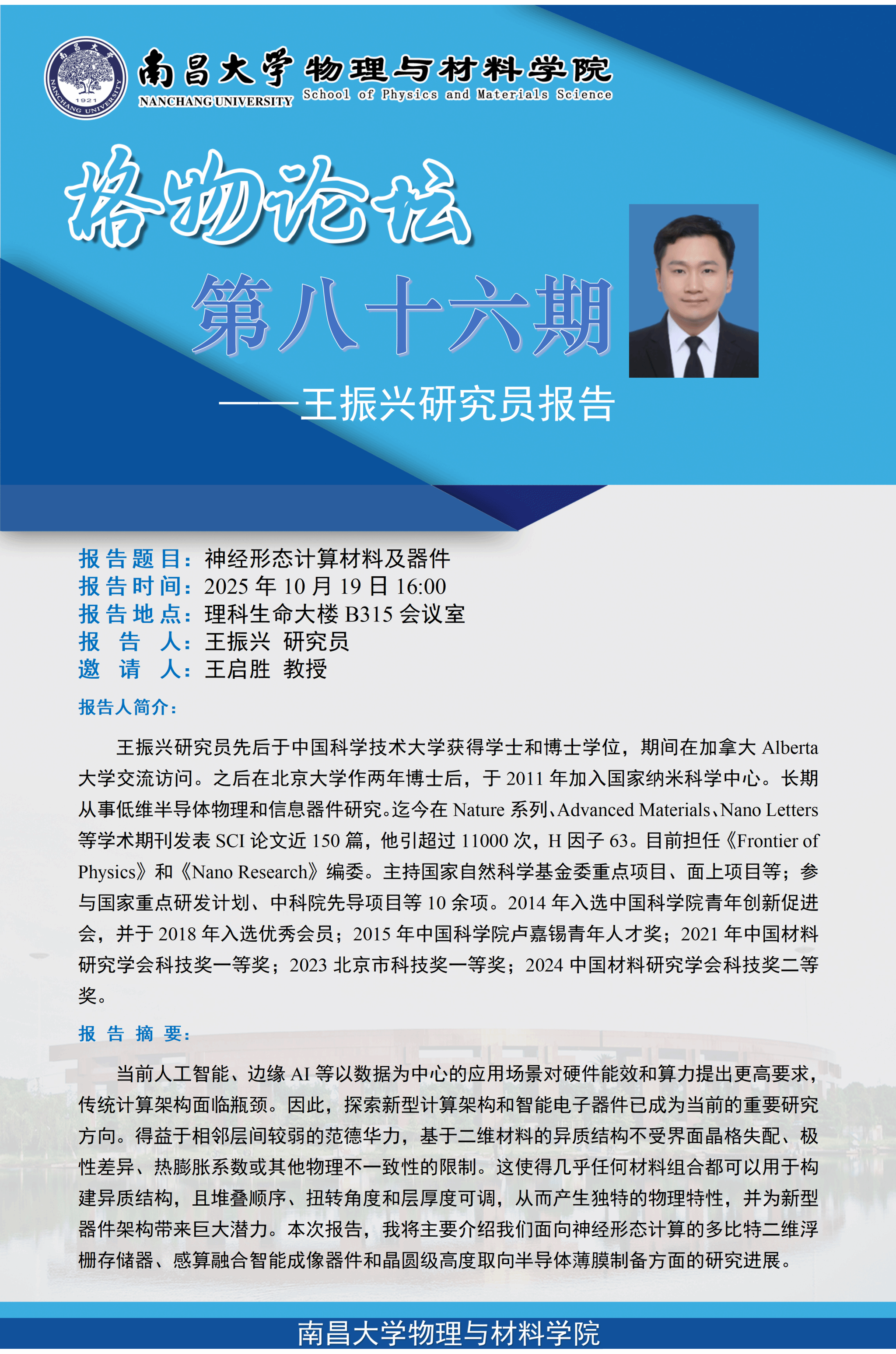 物理与材料学院格物论坛第八十六期--王振兴研究员《神经形态计算材料及器件》