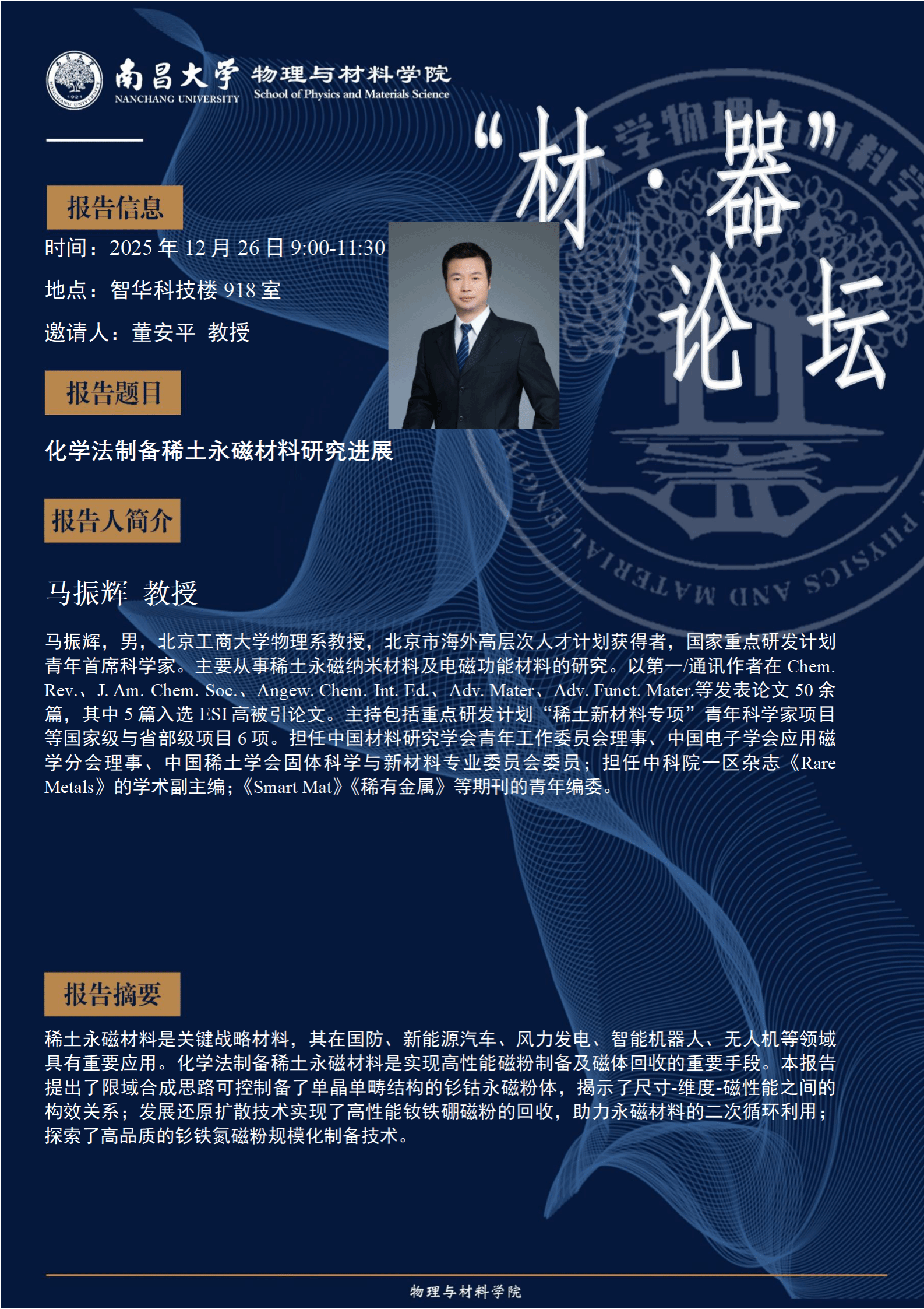 物理与材料学院材器论坛--马振辉教授《化学法制备稀土永磁材料研究进展》