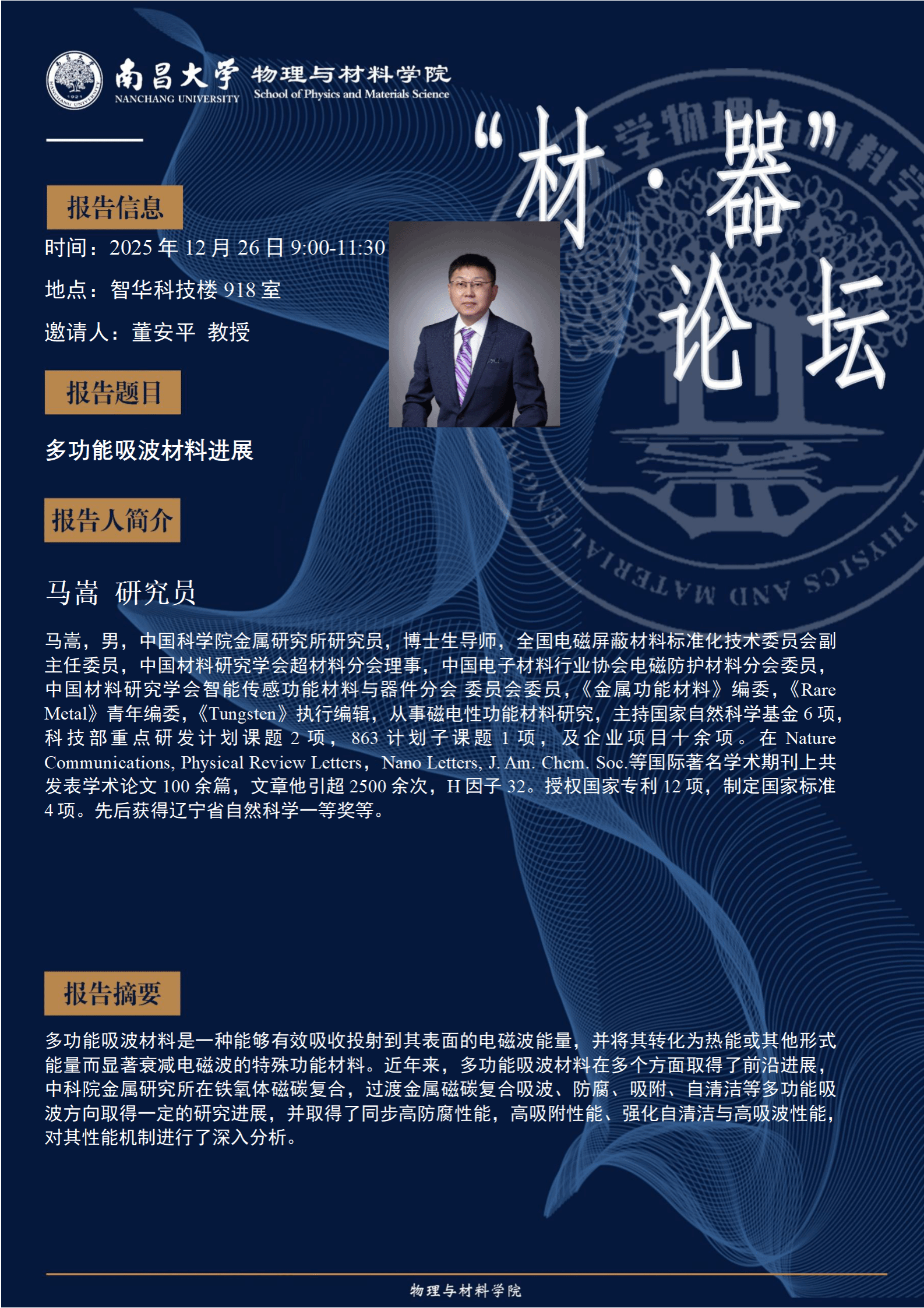 物理与材料学院材器论坛--马嵩研究员《多功能吸波材料进展》